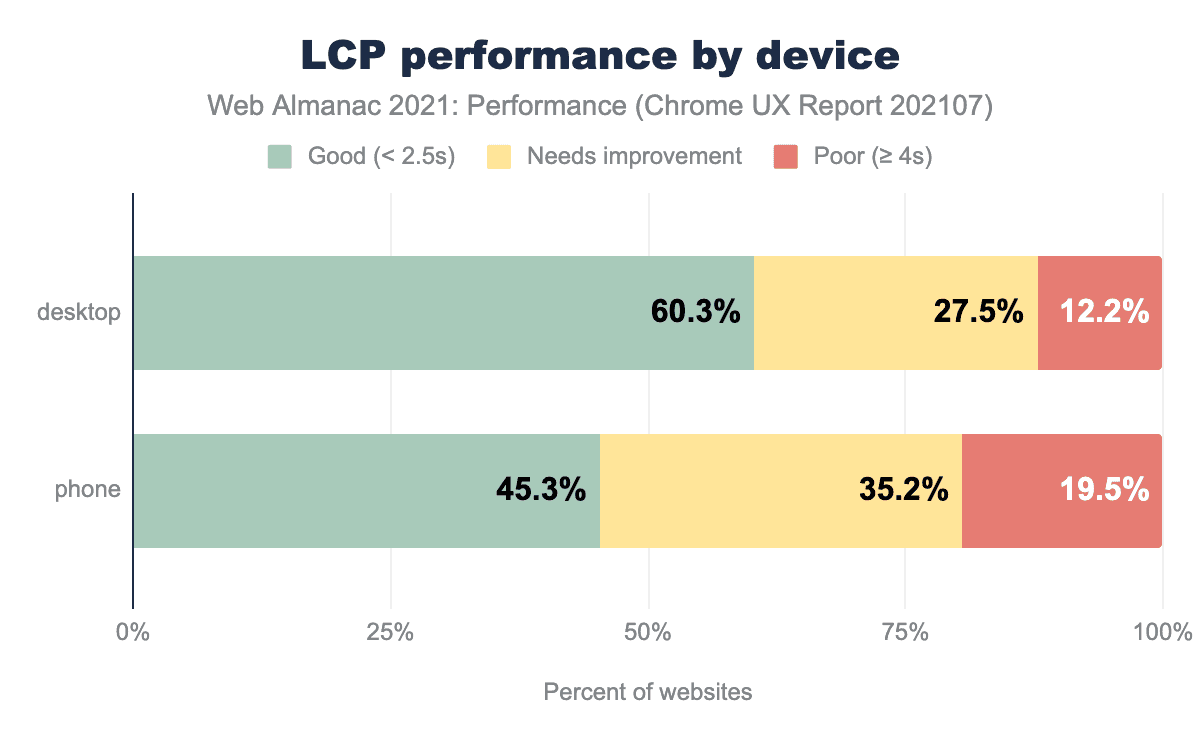 It does represent a small improvement from 2020, where only 43% of mobile page loads met the 2.5 second or under threshold.