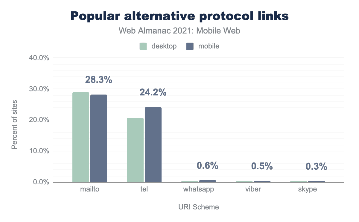 Of the top five mobile web technologies, adoption rates for three were higher on desktop sites. It is reasonable to attribute lower mobile adoption rates of these apps to mobile performance initiatives as these apps are frequently flagged by Lighthouse, the open-source auditing tool recommended by Google to diagnose performance issues.
