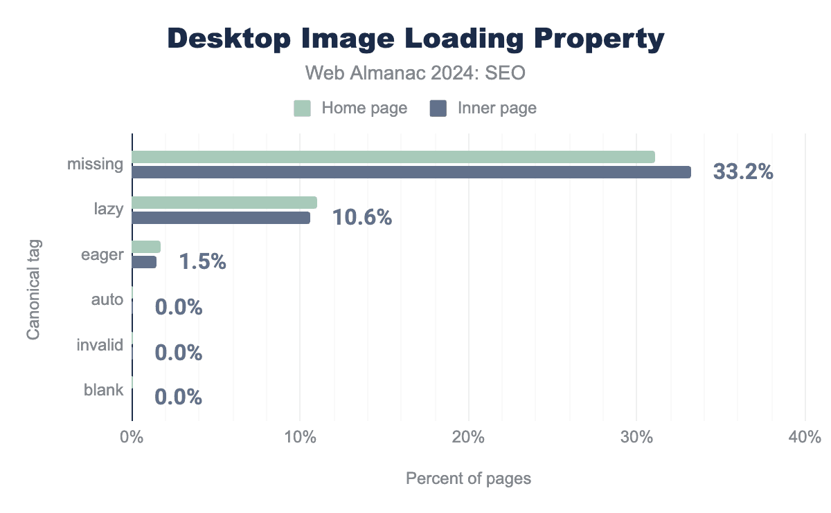 This year, we analyzed one inner page per site crawled in addition to the home pages, which is all this chapter has historically analyzed. Since home pages are often quite different from inner pages, this has unlocked new insights and allowed us to compare the behaviors of home pages verses inner pages.