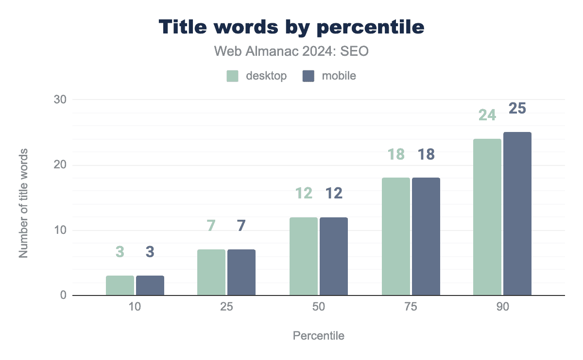 Inner pages contain slightly fewer words overall. The median mobile inner page in 2024 had 317 visible words after rendering, while desktop inner pages had 333 words.